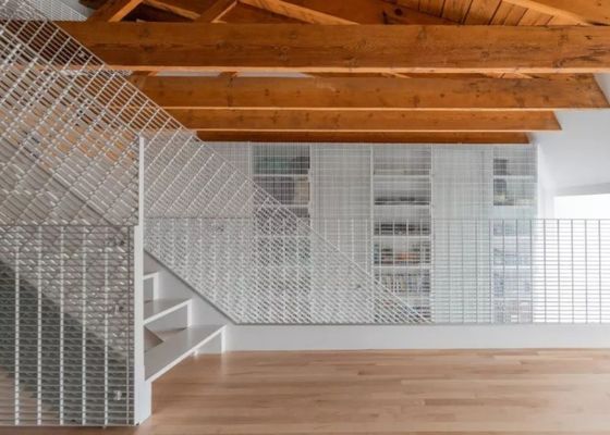 Lüftung und Lichtübertragung: Dekoratives Metallnetz ermöglicht Luftfluss und natürliches Licht, während ein Gefühl der Trennung erhalten bleibt.